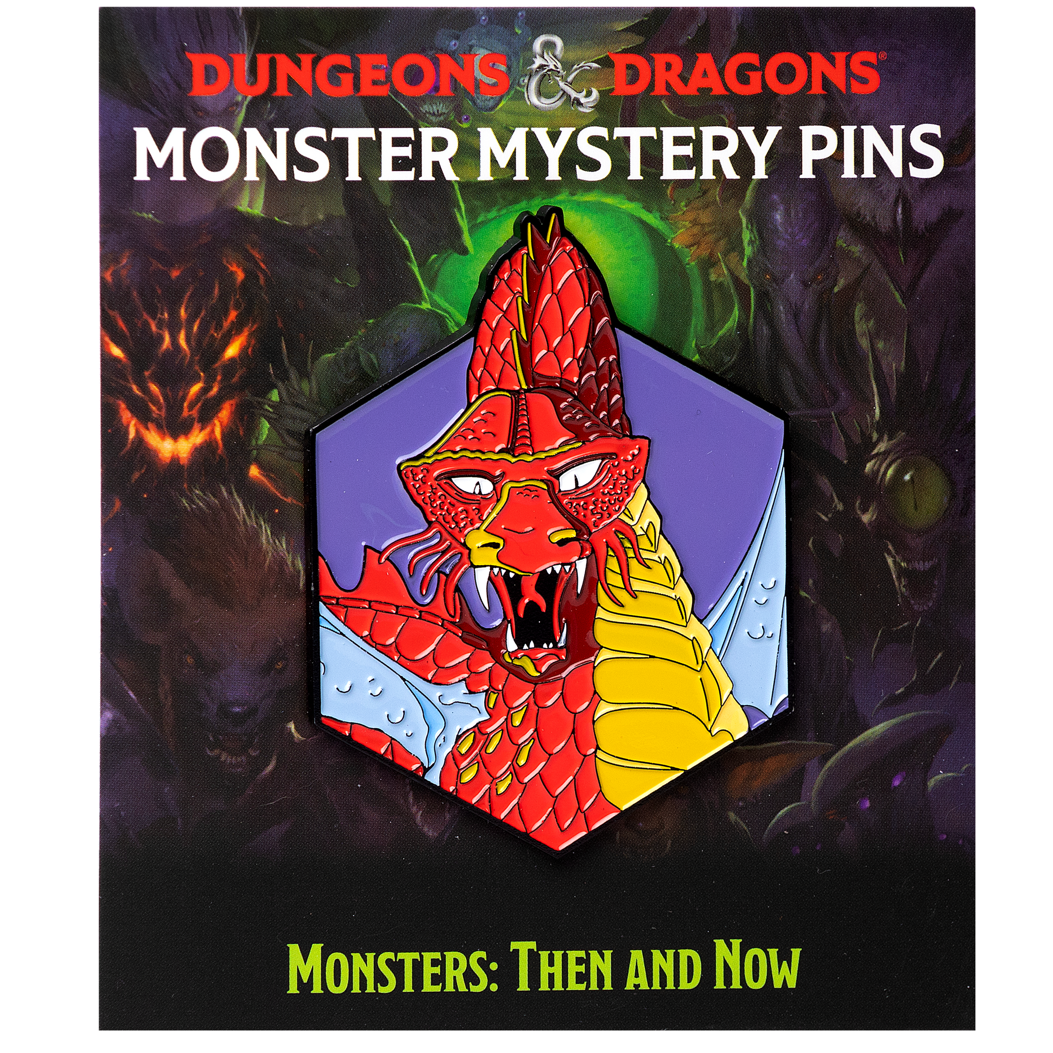 Dive into the rich history of Dungeons & Dragons with the D&D Monster Mystery Pins collection, featuring iconic monsters from every edition, spanning 1st through 5th. These collectible pins are packaged in randomized blind bags, adding a thrill to each purchase. res with four sterling silver-plated chase pins, creating excitement for collectors and newcomers alike. Each pin captures the evolution of D&D's beloved monsters, celebrating the game’s timeless legacy.